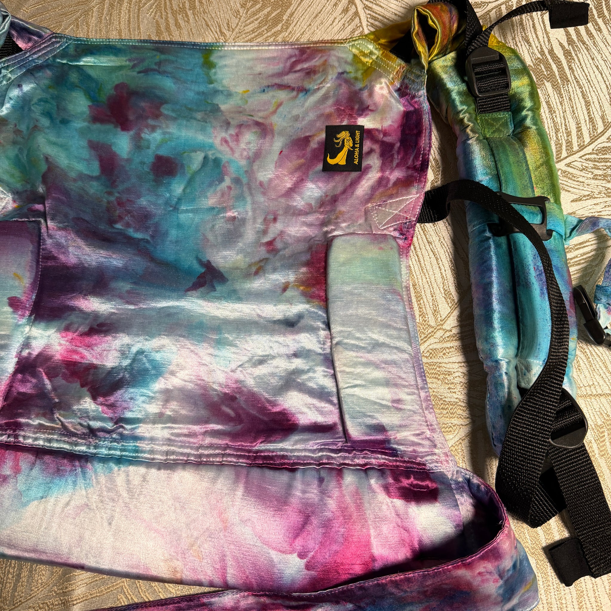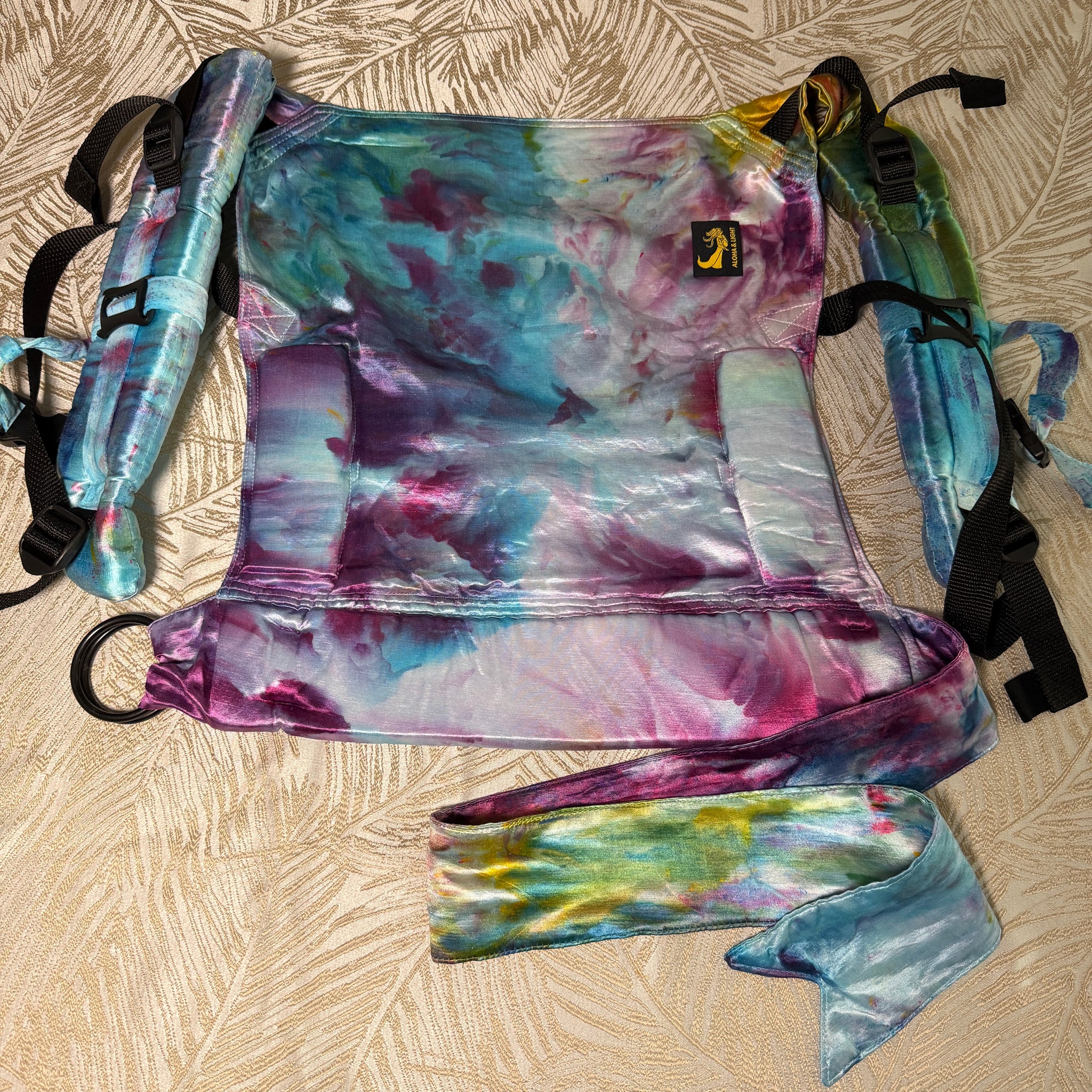 Made from cuddly soft and gorgeously-hand-dyed Eco-silk, Eco-Fin’s waistband ring adjusters offer versatility while also complementing our beautiful Eco-silk ring slings — the product that launched this company 12 years ago! 💕 The beautiful mermaid Fin detail on the waistband is a tribute to the Aloha & Light logo, and my lifelong love of mermaids (and is also the inspiration behind the product name)! 🧜