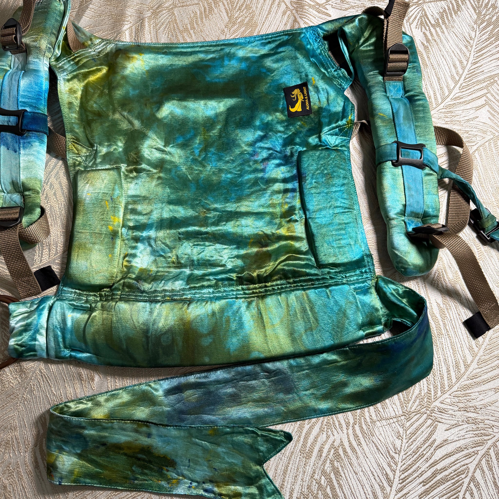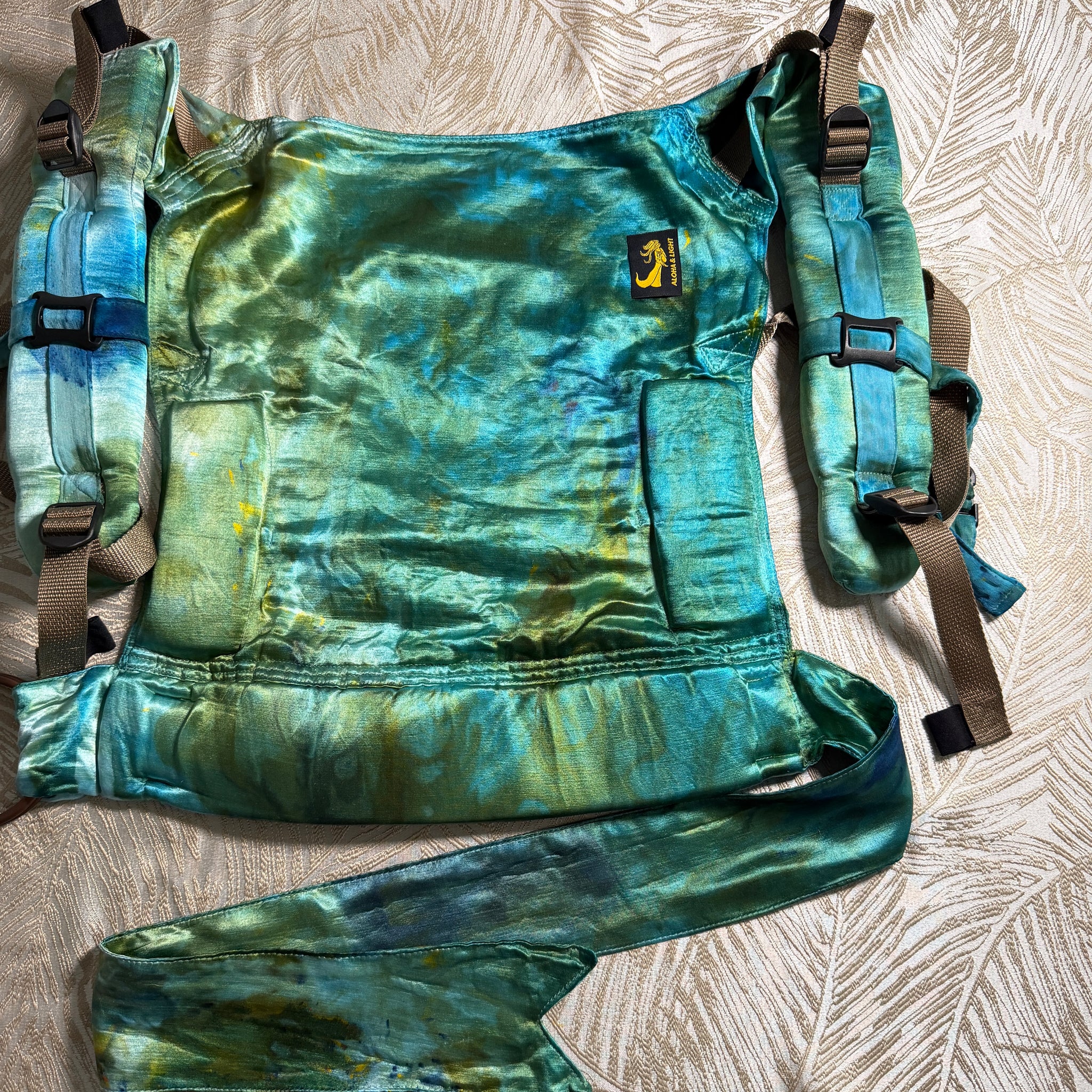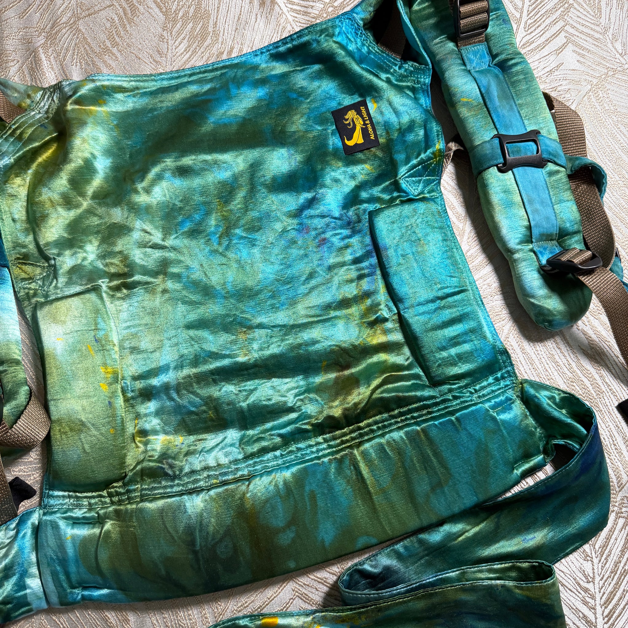 Made from cuddly soft and gorgeously-hand-dyed Eco-silk, Eco-Fin’s waistband ring adjusters offer versatility while also complementing our beautiful Eco-silk ring slings — the product that launched this company 12 years ago! 💕 The beautiful mermaid Fin detail on the waistband is a tribute to the Aloha & Light logo, and my lifelong love of mermaids (and is also the inspiration behind the product name)! 🧜